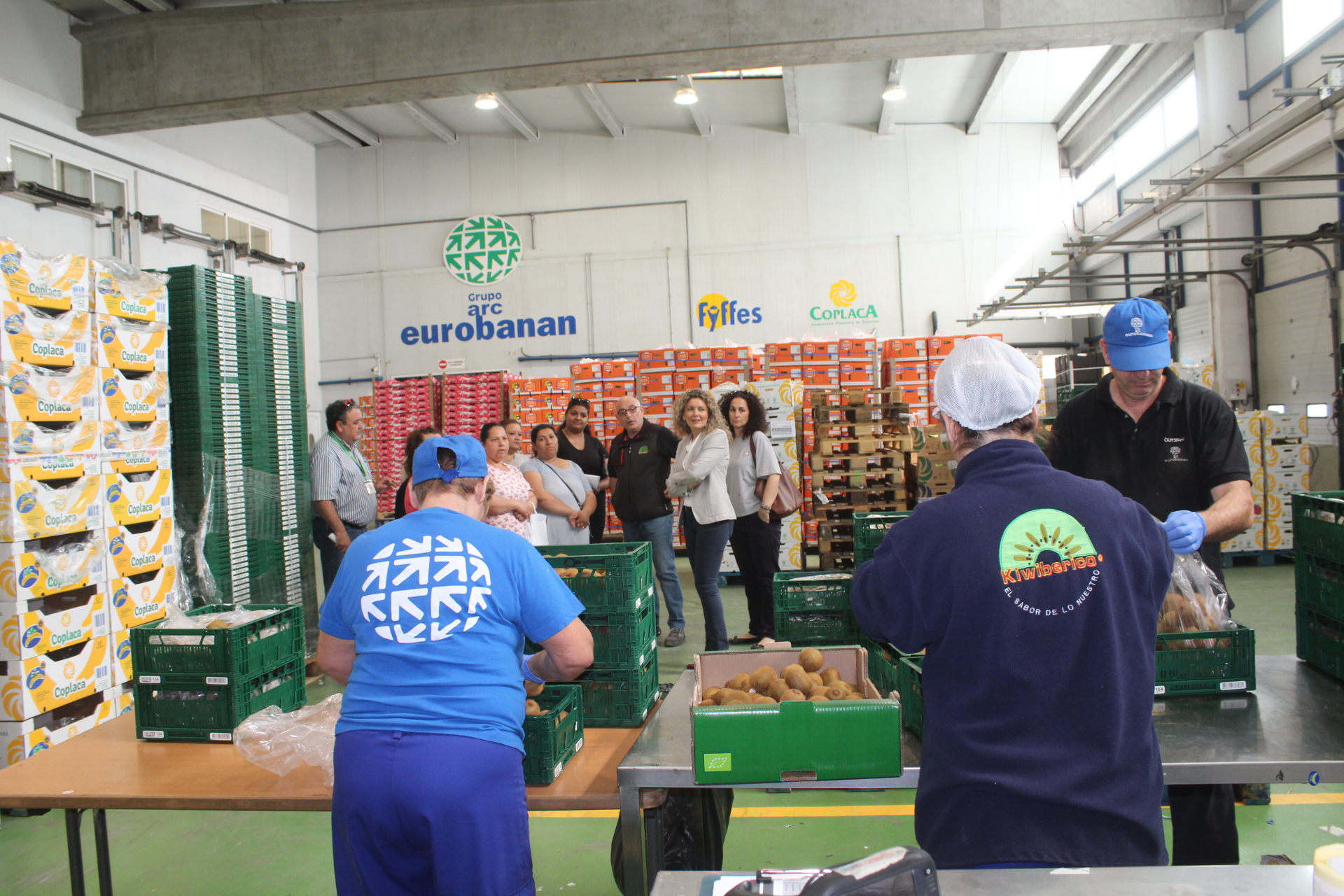 Mercalicante se ha reunido esta mañana con un grupo de mujeres de la Fundación Secretariado Gitano de Alicante (Sara Romí) con el objetivo de favorecer su incorporación al mundo laboral. La directora general de Mercalicante, Dolores Mejía, y el director de Administración y Finanzas de la entidad, Miguel Ángel Ramo, han ofrecido una charla, en la que se ha hablado de la actividad empresarial de Mercalicante y en la que se ha abordado el tipo de perfil laboral que buscan las empresas implantadas en el clúster alimentario. Tras la charla, la comitiva se ha desplazado hasta las instalaciones de la empresa Eurobanan y distintas empresas del Mercado Mayorista para conocer de forma directa los distintos puestos de empleo que se dan en este sector. La visita ha concluido con un recorrido por las instalaciones del banco de alimentos de Alicante.
